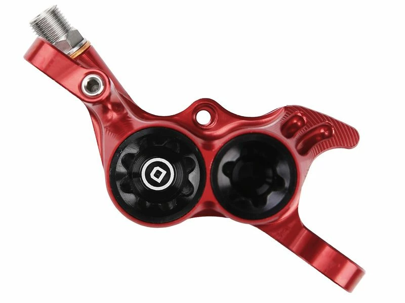 L‘étrier de frein Hope RX4+ est usiné à partir d’un bloc en aluminium 2014 T6 offrant une grande rigidité et un touché de freinage franc. Equipé de 4 pistons en résine phénolique (2 pistons de 14 mm et 2 pistons de 16 mm) ils sont ici développés pour fonctionner avec les freins à disque utilisant de l’huile DOT (Sram). L’étrier RX4+ est disponible en 6 couleurs d’anodisation (Bleu, Orange, Rouge, Noir, Violet, Argent) et est livré avec deux types de plaquettes (Bleues pour un usage route, et Rouges pour un usage Cyclo Cross / Gravel) .